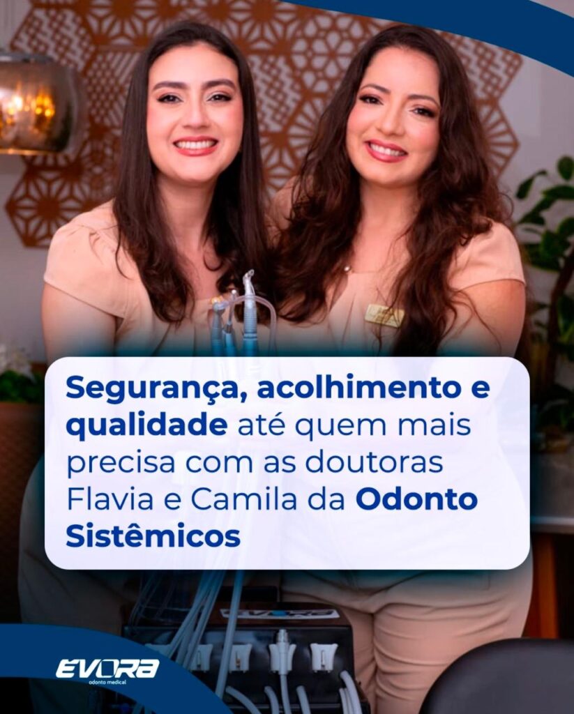 Hoje, gostaríamos de apresentar a vocês as doutoras Camila Viena @dra.camilaviena e Flávia Godinho @draflaviagodinho . Elas são as responsáveis pela Odonto Sistêmicos @odontosistemicos . E juntas, estão levando segurança, acolhimento e qualidade até quem mais precisa.